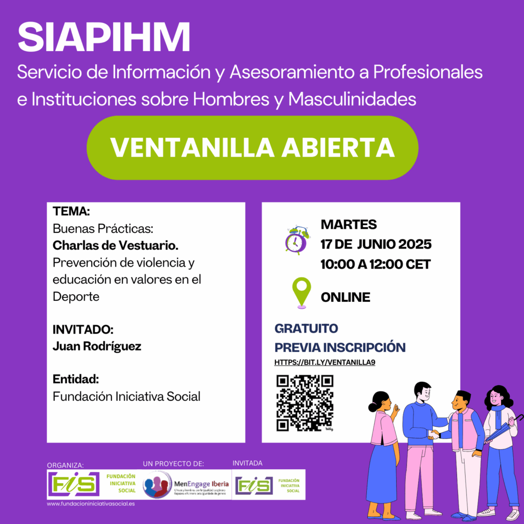 Descubre el programa al completo consultando el dossier del programa Masculinidades Corresponsables ExtremaduraDescargar Dossier PDF Conoce el proyecto Cuidadores por un día, en el colaboramos con varias entidades europeasCarers for a day Pulsa para ver la presentación 02.06.2025 Buenas Prácticas: Charlas de Vestuario 02.06.2025 09.04.2025 Buenas Prácticas: Masculinidades y Salud 09.04.2025 08.04.2025 Curso online Políticas de igualdad sobre hombres y masculinidades en la provincia de Sevilla: Hacia una agenda pública transformadora. 08.04.2025 26.02.2025 Buenas Prácticas: Masculinidades diversas con enfoque antirracista 26.02.2025 13.01.2025 Buenas Prácticas: Formación dirigida a empresas en materias de Corresponsabilidad y Masculinidades -Ventanilla Abierta del servicio online SIAPIHM 13.01.2025 29.10.2024 Buenas Prácticas: Intervención con Hombres Migrantes. Ventanilla Abierta del servicio online SIAPIHM 29.10.2024 Sigue leyendo nuestro blog